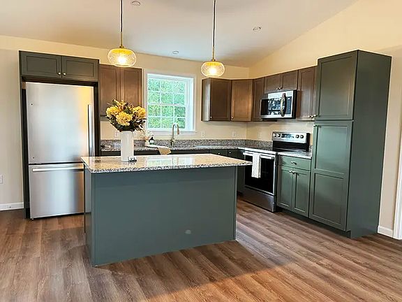 Brand new 55+ Community Townhouse Rentals for those 55+ years of age. Discover a brand-new, elegantly designed duplex in Palmyra, Maine, available for $1,750 per month. This spacious, smoke-free rental offers an open-concept layout featuring a modern kitchen with granite countertops, a comfortable living room, one bedroom, a versatile spare room, large closets, and a well-appointed bathroom. Also included are a single-car garage (16x26) and a covered patio, perfect for outdoor relaxation. This property includes radiant heat, hot water, lawn care, snow removal, and trash services in the monthly rent. A standby generator provides backup power for heat and water, with an additional portable hookup available for other essentials. Located just two miles from Walmart, this home combines comfort, convenience, and community in a quiet, scenic setting. This property requires a one-year lease, with a security deposit and both the first and last month's rent due before move-in. If you have a pet, a one-time pet deposit of $1,000 applies, with a limit of one fully-grown pet under 25 pounds. Pets must be leashed when outdoors. Year Lease 1st, last and security deposit due at signing.