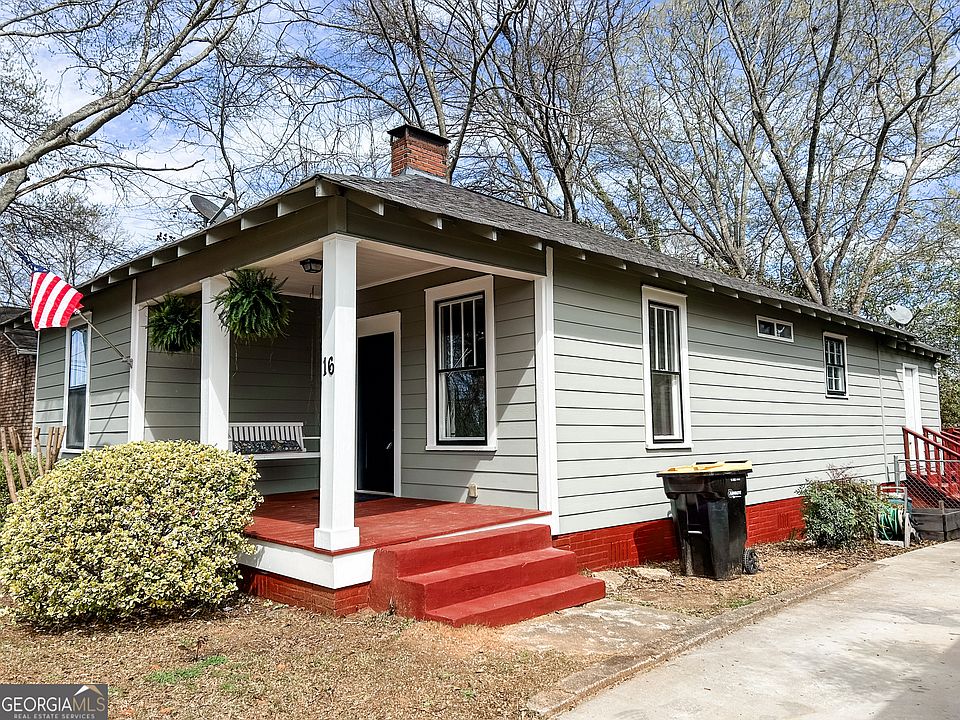 Beautifully renovated Historic 1930's home located within walking distance to the downtown square of Newnan where you can stroll to nice restaurants, shopping, markets, churches and festivals. It is within walking to distance to the Elm St Elementary School also. Interior features include the gorgeous original heart pine floors in all rooms except the kitchen which has the waterproof luxury vinyl planks. Master bath has a pocket door entry, ceramic tiled floors and shower with dual marble vanity. Full hall bath has ceramic tiled floor, tub/shower combo with window above to let in some light. Kitchen has new gas stove, dishwasher and fridge and lots of cabinets for storage. Laundry closet is in kitchen convenient to all bedrooms. Oversized master with decorative fireplace, ceiling fan, sitting area and barn door walk-in closet. 2nd bedroom off the kitchen and 3rd bedroom in the back could also be used for dining or additional family space. 3rd bedroom has french doors to the deck and an exterior entrance with a pet door. Exterior features include covered front porch with swing, private shady fenced backyard and back deck for your BBQ/hammock and entertaining. Outbuilding in the back to store extras or to become a she/he shed. No Homeowner Association