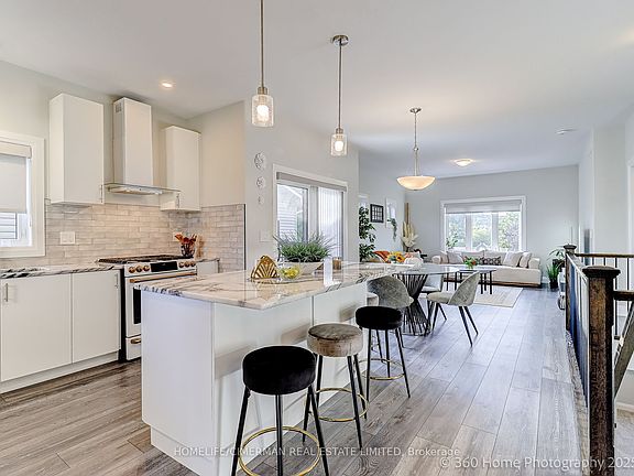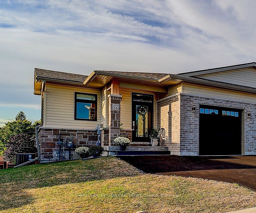 Built in 2023 and upgraded beyond builder standards, this semi-detached bungalow offers low-maintenance living with a bright, open layout perfect for first-time buyers, young families, or downsizers. At the heart of the home is a chef-inspired kitchen with granite counters, a spacious island for casual dining, tiled backsplash, and a premium Café appliance package with a gas cooktop and oven. Whether hosting friends or preparing family meals, this kitchen is designed to impress. The open-concept living area is filled with natural light, while the primary suite offers a walk-in closet, spa-inspired ensuite with glass shower, and the convenience of main floor laundry. Downstairs, the finished walk-out basement doubles your living space with endless possibilities. A large recreation room opens directly to the backyard, making it perfect for kids to play, family movie nights, or extended family living. The basement level also features a generous second bedroom, a 4-piece bath, and a flexible utility room that could convert to a home office. Step outside to enjoy a private landscaped backyard featuring an interlocked deck, gazebo, and stone garden with perennials, creating a low maintenance retreat for entertaining or relaxing. Additional upgrades include a resurfaced driveway, electric window coverings, and modern fixtures throughout. All of this just minutes from Highway 401, schools, hospital, daycares, golf courses, parks, and Lake Ontario that offers small-town charm with easy access to Belleville, Peterborough, Kingston, and the GTA.