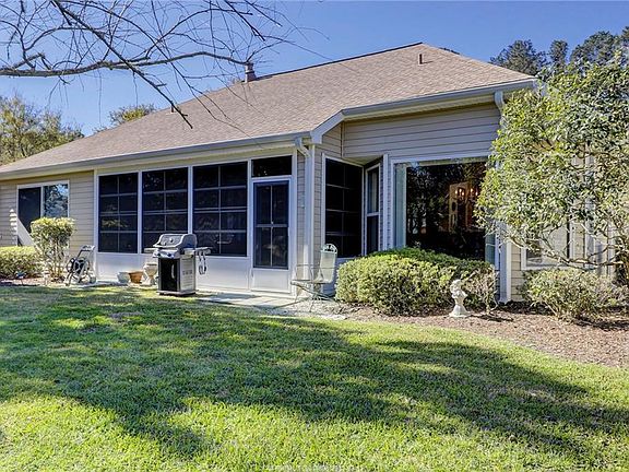 **VERY popular Hamilton/Jefferson model** The new wood floors and gas fireplace with wood mantel make this home stand out from the others. Two bedrooms, two baths with a nice size den, laundry room and an updated screened porch with vinyl windows (approx 10' x 20'). Privately situated on a big, beautiful corner lot with mature landscaping and lushly landscaped berm behind and on right side of home. Conveniently located on a private street near amenities and gate. Newer roof and HVAC. No popcorn ceilings! Great home--great lot--great location--at a great price! This is the one you have been looking for!