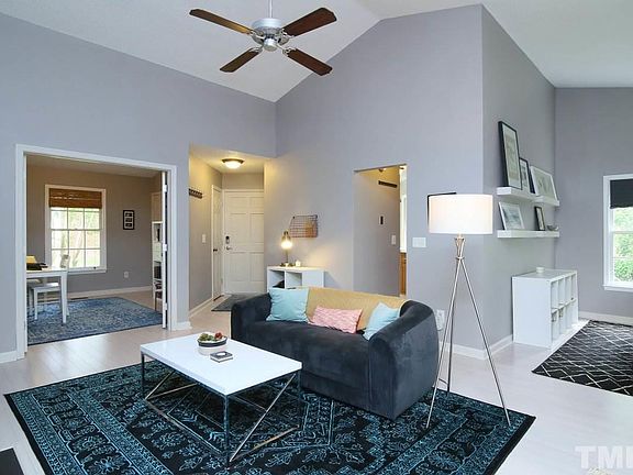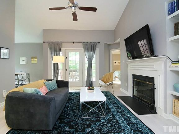 Contemporary Chic is what you'll find in the 3BR, 1 level, end unit townhome. Beautiful bamboo floors in living area & office. FR has wood burning fire place & built in shelves. Flows nicely into sep DR or out onto huge deck that overlooks private back yard. Kit offers sunny breakfast area, along w/ granite counter tops & SS appliances.Interior freshly painted. Brand new heat pump installed this year. Community amenities include miles of walking trails, tennis courts, playground & pool available to join.