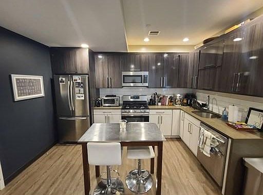 CONDO QUALITY PET FRIENDLY 1 BEDROOM/1 BATHROOM WITH GARAGE PARKING AND JUST ACROSS THE STREET FROM THE T! NEW CONSTRUCTION UNIT FEATURING HARDWOOD FLOORS THROUGHOUT, FULLY APPLIANCED EAT-IN KITCHEN, LARGE BEDROOM, IN-UNIT LAUNDRY, CENTRAL AIR/HEAT, SMALL CHALKBOARD WALL, MODERN BATHROOM, SMALL DECK AND ONE (1) GARAGE PARKING SPOT. TENANT TO PAY ONE MONTH BROKERAGE FEE.