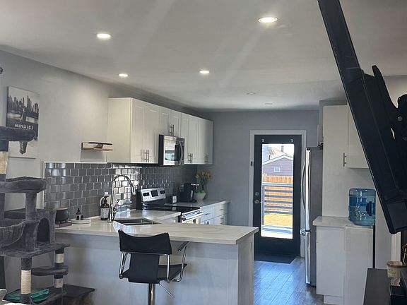 Updated kitchenOpen-concept main floorModern finishesSpacious recreation roomHome gymLarge backyardRear deck