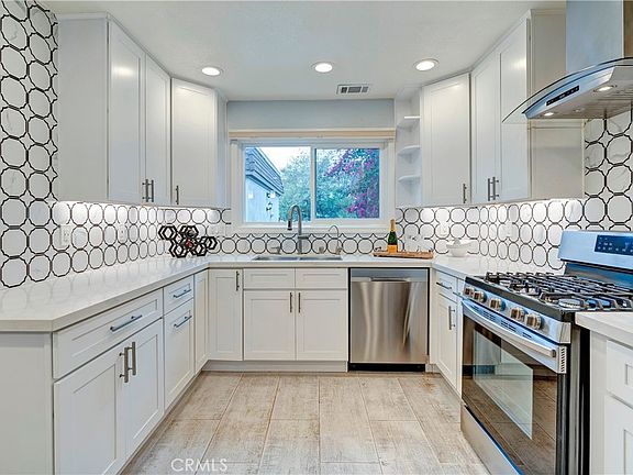 Welcome to 16 Queens Wreath Way, a spacious home boasting 2 bedrooms and 2 bathrooms, situated in the coveted University Park neighborhood of Irvine. This lovely single-story home underwent a full remodel in 2021. Everything, from the kitchen adorned with Calcutta quartz countertops, designer backsplash, white shaker cabinetry, to stainless steel appliances, has been meticulously upgraded. The bathrooms have been fully remodeled with designer tiles and hardware. Additionally, all-new dual-pane vinyl windows and sliding glass doors, along with recessed lighting in every room, enhance the modern appeal of the home. A modern solid wood and glass entry door welcomes you inside, complemented by designer custom interior paint. The focal point of the living room is a beautifully crafted porcelain-wrapped fireplace with glass flames, adding warmth and elegance. Throughout the entire home, you'll find LVP wide planks and ceramic tiles, creating a cohesive and stylish look. The plumbing has been completely updated with PEX plumbing, and a 40-gallon water heater ensures ample hot water supply. Outside, a large backyard is enclosed by a vinyl fence, offering privacy and space for outdoor enjoyment. The university park offers an abundance of amenities, including acres of green belts, a public library, play areas, multiple pools, picnic areas, sports courts, and a clubhouse. Conveniently located near world class shopping and entertainment and assigned to prestigious schools, including University High School, Rancho San Joaquin Middle School, and University Park Elementary. Minutes from UC Irvine, major freeways, stunning beaches, John Wayne Airport, shopping districts, top-notch medical facilities, diverse dining options, and numerous employment centers. As an added benefit, university park has one of the lowest HOA dues in Irvine and no Mello Roos! Your best life starts here! Don't miss out on this exceptional single-story beauty!