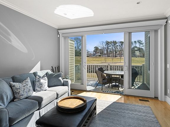 Nestled within the coveted and gated Residences at South Cape Beach, this exquisite end unit condo offers a rare opportunity for luxurious and low maintenance coastal living overlooking the golf course. Boasting a gourmet kitchen with an island and a see-thru gas fireplace to the great room, this home exudes an air of sophistication and elegance. Hardwood flooring, crown moldings, and carefully selected lighting fixtures accentuate the impeccable attention to detail throughout. The first-floor primary en suite impresses with cathedral ceilings and a walk-in closet, while the second floor living area features a stunning uplit trayed ceiling, seating area, and an additional primary bedroom en suite. The walk-out lower level unveils a 7-seat media room, perfect for entertaining, along with a family room or guest space. With only 24 units in this pet-friendly complex, the property offers an exclusive and intimate setting for discerning residents.