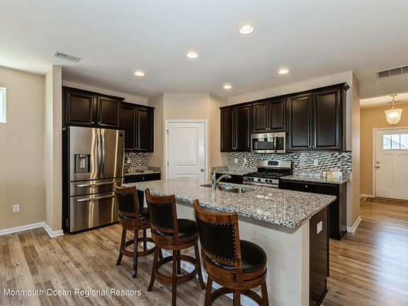 Welcome to Seacrest Pines 55+ Active Adult Community in Barnegat. This stunning single story home features 3 Bedrooms and 2 Full Baths. The open flow design and natural light adds elegance and charm. The foyer welcomes you in with a large Bedroom and Bath on one side. As you continue on down the foyer, you'll find another large Bedroom and Laundry room beautifully organized w cabinets and shelving. The kitchen offers ample counter space, SS Appliances, a huge pantry and a large center island overlooking the dining area. Off of the living room sits an owner's suite, highlighting a spacious bathroom and a huge walk in closet. Entertain or relax in the cozy 3 season room or spend summer nights on the landscaped 10 x 16 paver patio surrounded by a 4' high aluminum fence with gate.