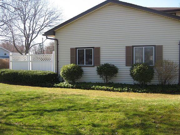 Spacious center split, single family owned and extremely well cared for property, economical hot water baseboard heat with forced central air. Woodburning fireplaced family room with sliders to concrete patio, SPACIOUS eat-in kitchen with appliances included, brand new dishwasher, lots of counter top space and built in desk. Large entry foyer with durable ceramic flooring, hardwood floors gleam, living room currently set up as formal dining including elaborate center light fixture. 1st floor bedroom and powder room. 3 good sized bedrooms. Vinyl siding, oversized garage, basement level offers storage, laundry and small kitchen with counters and cabinets. Nearly 1/2 acre lot is level, useful and with 146' frontage offers elbow room!! RGE avg $155/mo.