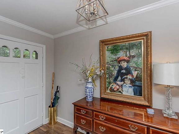 Don't miss this beautiful, updated brick ranch with full walkout basement. 4BR's, 2.5BA's, Combined Rec rm and Den in basement with 2nd fireplace, HUGE Laundry / Utility rm, Oversized Garage, 2-Fireplaces, Hardwood and LVP Floors, Eat-in Kitchen, Formal Dining Room/Home Office, Large Living Room and Den, Large Covered Front Porch and Rear Patio. Updates include LVP flooring, new stainless oven, micro & dw, light & plumbing fixtures, paint int. & ext., new windows, new water heater, gutters, newly sealed floor and new door & motor in garage, and some electrical & hvac improvements,. Long driveway with turnaround space and extra parking strip at the road. Large patio overlooking greenspace behind the lot. Great location about 10 mins from downtown Greer, 15mins from downtown Greenville or T.R. Great schools and plenty of shopping, dining and recreational venues nearby. A Must See under $400k!