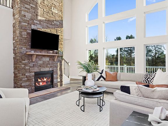 This Truman floorplan is conveniently located off of Warrenton Rd, with quick access to I-95. A covered craftsman front porch and 3-car-garage welcome you into the home. Entering the main level, the Truman features a beautiful open concept with a dramatic 2-story living room with a Stone Fireplace and stunning views of the 10 Acre private homesite. A sunroom extension off the main level and a 10x20 composite deck help cater to all of your backyard entertaining dreams. The lower level will be fully finished with a full bathroom and a sliding door exit to the backyard. At the upper level, you'll find 4 bedrooms including the owners, a hall bath, and a beautifully upgraded Platinum Owner's Bath. Interior Upgraded selections include hardwood throughout the main level, tile upgrades, and much more. There is still time for personalized color selections to be made.
