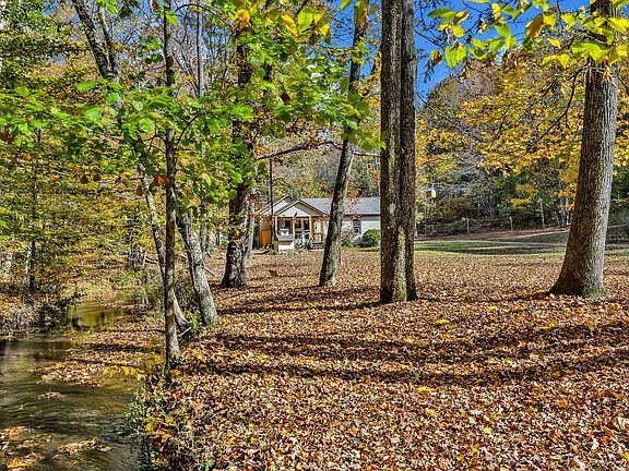 A highlight of this cottage is its proximity to the creek. The soothing sounds of the creek provide a constant backdrop, creating a truly immersive natural experience. Its soft, muted color palette complements the surrounding landscape, allowing it to blend seamlessly with the environment. A covered porch spans the front of the cottage, providing a welcoming entrance and a peaceful spot to take in the scenic views. As you step inside, you're greeted by a semi open-concept living area. The kitchen is designed with both functionality and charm in mind. The two bedrooms are thoughtfully laid out to provide comfort and privacy. A sunroom overlooking the creek is a haven of peace and connection with nature. From the sunroom to a private deck or patio, providing easy access to the outdoors. The deck offers additional seating, allowing for seamless transition between indoor and outdoor relaxation spaces. Carport to small shed. Storage shed coveys with the property.