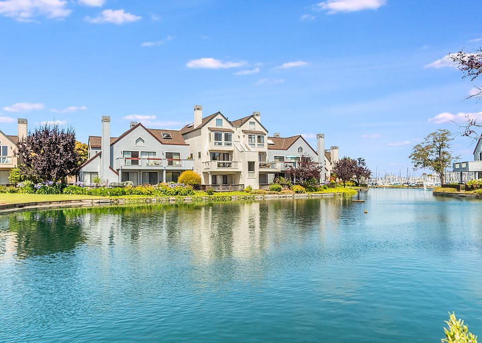 Tranquil water setting at Marina Village, 2 bed. plus spacious bonus room (perfect for home office), 3.5 bath highly upgraded townhome style condo. Quality renovations throughout featuring remodeled kitchen and bathrooms, tile and bamboo flooring, recessed and track lighting. Enjoy the peaceful water setting and fountain from either the lower patio or the main level deck. Oversized garage w/ample storage space. Community pool and spa with walking trail along the picturesque marina. Walk to shopping center and a short drive to Alameda ferry. HOA scheduled to paint exterior of building this September.