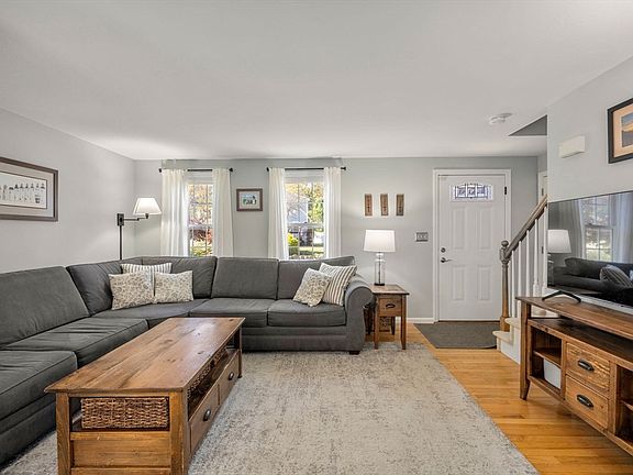 Open House Cancelled! This pristine 3-bedroom 2-bath Cape is located in the highly sought-after Cross Creek neighborhood, nestled on a quiet cul-de-sac. Conveniently situated near Birch Street Playground and just minutes from Route 53 and Route 3. Step inside to an open-concept first floor featuring a bright living room, dining room, and a beautifully updated kitchen with new SS appliances, granite countertops, white cabinets, and a stylish tile backsplash. The main level also includes a bedroom and modern full bathroom. From the dining area, step out onto a spacious deck that’s perfect for entertaining, overlooking a large fenced-in backyard complete with a new shed. Upstairs, you’ll find two generously sized bedrooms with ample closet space and a beautifully updated full bathroom. The finished basement provides versatile space for a home office, playroom, or media room. Other features include central A/C, new hot water heater, some new windows & slider & newer roof and deck