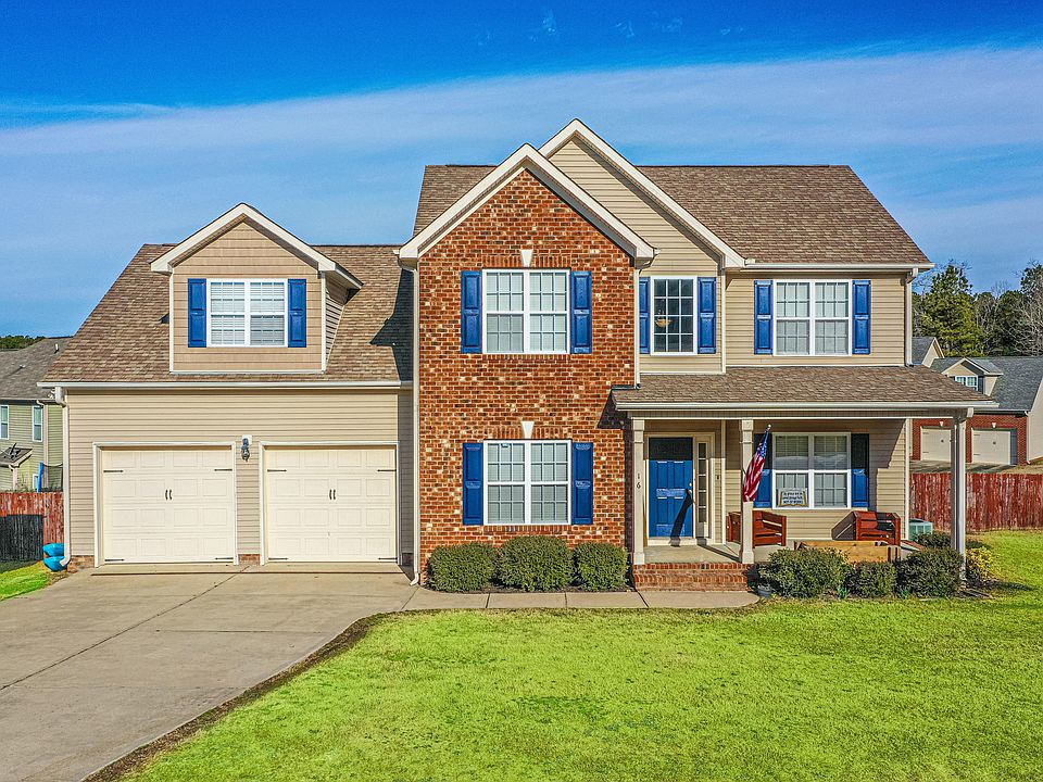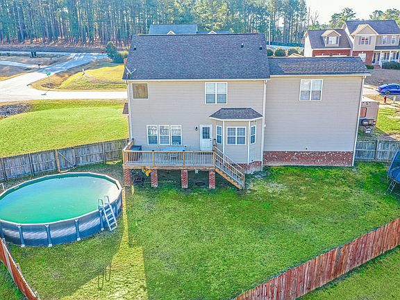 Your home is waiting! This fantastic corner lot home is located close to Fort Bragg & Raleigh! Open floor plan with a kitchen/dining/livingroom flow perfect for entertaining. The recently improved deck overlooks the backyard and pool. One bedroom is conveniently located downstairs, the other 3 bedrooms are upstairs along with the laundry room and massive bonus room.