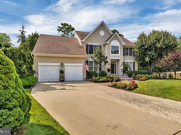 Sunfilled 5 bedroom 3.5 baths lakefront Newbury Model in The Reserve @ Voorhees. This magnificent colonial home makes Longwood Gardens look bad! The minute you drive up you will be amazed! Slate walkways, wisteria intertwined through the decking, cozy rear covered patio, 2-level terrace, and stunning southwest views of the lake's grand entrance. Foyer, separate library-living & dining room, 9 ft ceilings, new custom kitchen in 2015, quartz island tops, 6 burner monogram range, greenhouse window, microwave, custom cabinetry, and a onyx backsplash. The hardwood floors extend the entire main level into the vaulted skylight family room with multiple windows overlooking the lake. Upstairs you will find four bedrooms with an extended primary bedroom with a separate sitting room with double closets and a garden tub bath. The three additional bedrooms all have great space and the hall bath is updated. The walkout lower level has a media room, fifth bedroom and bath plus separate storage areas. For peace of mind HVAC was replaced in 2018, the hot water heater in 2017, kitchen in 2015. This home feels like you were up in “New Hope PA”. Great home private lot!