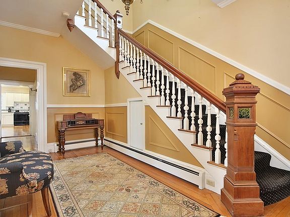 Brimming with charm and in a prime West Newton Hill location, this well-maintained Queen Anne Victorian offers spacious rooms, high ceilings & oversized windows. The foyer leads to a great living room w/a bay of windows, a decorative fireplace & pocket doors to the family room, which has another bay of windows and wood-burning fireplace. At the back of the house are a roomy updated kitchen with corian counters and a breakfast bar that opens to the breakfast room with 2 walls of windows. The entertainment-sized dining room connects the kitchen and family room. This level also has a lovely study & updated half bath. On the 2nd level are 4-5 attractive bedrooms, all with multiple exposures, as well as 2 full baths & kitchenette. Less recently finished, the 3rd floor has ample space including 2 potential bedrooms. The walk-out lower level is ripe for expansion and has a playroom and laundry. Less than a mile to Peirce Elementary, Newton North, West Newton Village/commuter rail & Mass Pike.