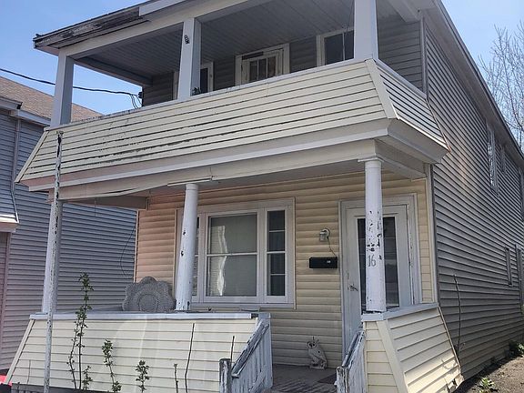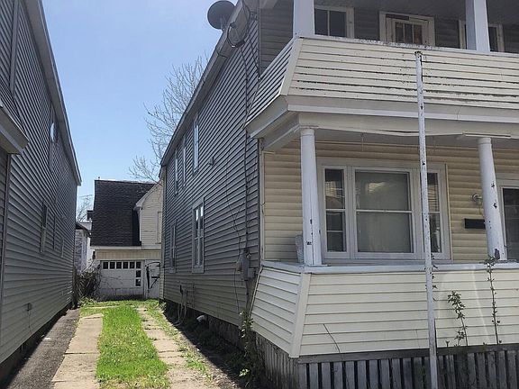 Don't miss this great investment opportunity!! Convert this home back into a two family. Long term tenant on the first floor paying $750/monthly. First floor current layout features 2 bedrooms/ 1 bathroom. Second floor has the potential to be a 2 bedroom/ 1 bathroom with a balcony apartment which could potentially be rented out for $800/monthly. Detached two story garage also has the potential to become another stream of income. Recent improvements feature new furnace, roof and vinyl siding. Endless opportunity for the right imagination.