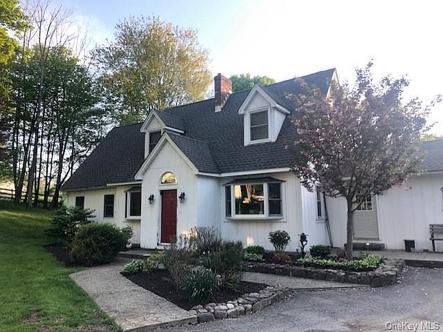 PRIVATE CONTEMPORARY CAPECOD! 5 ACRES!! Nature Lovers Paradise!! 3 Bedrooms! 2 Full Bathrooms! 2 Car Detached Garage with Walk up Loft! Updated Eat In Kitchen with Stainless Steel Appliances! Dramatic Two Story Living Room with Fireplace! Formal Dining Room! Gleaming Hard Wood Floors! Central Air! Patio! Beautiful Property that Borders Goose Pond State Park! Barn! Outbuildings! Monroe Woodbury Schools!
