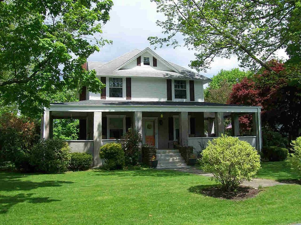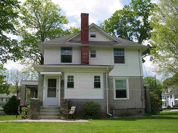 Brand new roof on this Arts and Crafts style home with wrap around porch. Home upgraded with 3 separate roofs vinyl siding,maple cabinets and replacement windows.Powder room was added on the 1st floor for convenience.Spacious Living Room with 9' ceilings.Formal Dining Room with hard wood floors and built in china cabinets for storage.Hardwood floors under LR & BR carpets.Double staircase to four 2nd floor bedrooms and full bath.Walk up attic, walk out basement and 2 car detached garage.Built in pool.All close to town,train and local ski areas!