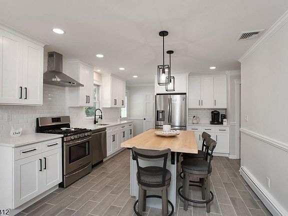 This newly renovated home has been meticulously crafted with attention to every detail. Beautifully designed kitchen features all new cabinetry, Quartz counters, porcelain floors, island w/lighting, SS appliances & coffee/buffet station. Kitchen flows into dining area with access to deck. Sun-filled living room opens to dining room for easy entertaining. Gorgeous trimwork and hardwood flooring throughout. Spacious FR with stunning tray ceiling & gas fireplace. Primary Bed w/ensuite bath, WIC & additional closet. Beds 2 & 3 are sun-filled & spacious. Bed 4 on upper level has built-in shelving and walk-in closet. Newly updated main bath w/modern tilework & double vanity. Convenient one floor living with the benefit of a full finished basement includes a huge recreation room, large workout room w/dance barre, home office w/closet, full bath w/stall shower, laundry room w/built-ins and an abundance of storage space. Access to 2-car garage from basement & 1st floor is a huge plus! The backyard oasis is an entertainer's dream with 30x15 above ground pool surrounded by Trex deck, additional paver patio, BBQ w/natural gas hook-up, lush and level yard for games, and shed for storage. Located on a lovely cul-de-sac street and is minutes to retail & grocery shopping, NJ Transit, parks and stellar school district.