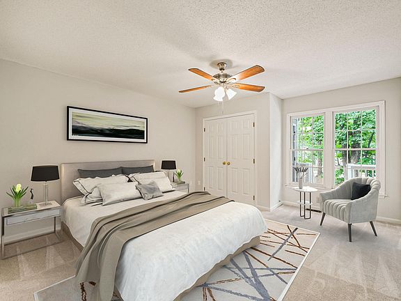 Let's Move to Chadwick Townhomes! Located on a premiere lot within this highly desirable North Raleigh community, this end-unit townhome offers over 2100 square feet of living area and includes a large ''flex'' room on the main level perfect for a variety of uses. Prefer a garage? With HOA approval and permitting, conversion of the ''flex'' room into a 1 car garage is a possibility. Freshly painted with new carpeting, this home provides a sense of ''space'' accentuated by vaulted ceilings, extensive windows, and a 2nd level loft. Both the primary and guest bedrooms offer large en-suite full bathrooms for privacy. Facing easterly, the eat-in kitchen offers morning sun while the main living area provides space for more formal dining. When touring, don't miss the rear deck with additional storage closet and the lovingly maintained landscaping. Virtually stage. Washer, dryer & refrigerator convey. This home is ready for you and can be further personalized!