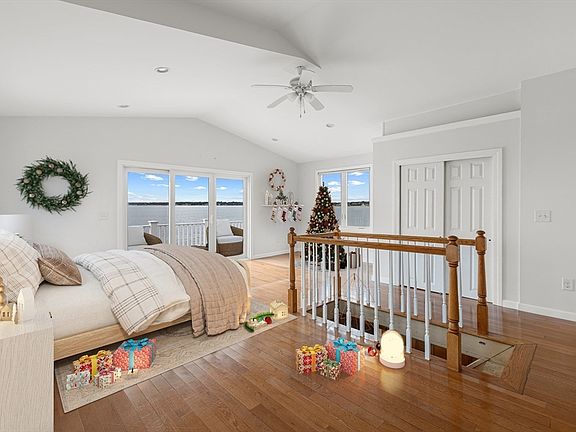 YEAR ROUND WATERFRONT - Amazing views & water access! This home offers flexible options - second floor can be used as a full master suite, or submitted for approval as an income unit, or used as a kitchen/living area (it is fully plumbed for a kitchen). The wall of windows on the first floor overlook the water & provide beaming light throughout the day. The first floor living room highlights a beautiful brick fireplace serving as a focal point for gatherings, while the beamed ceiling & wood wall add character & a sense of charm. First floor - 2 bedrooms & a full bathroom. Second floor - additional bedroom, full bathroom, & front to back family room. Second floor bathroom is appointed with a tiled walk-in shower & double vanity, offering both convenience & a touch of luxury. This home is perfect for outdoor entertaining & also features a large patio which is partially covered, as well as a balcony and deck where one can relax & enjoy the never-ending beauty of a waterfront view.