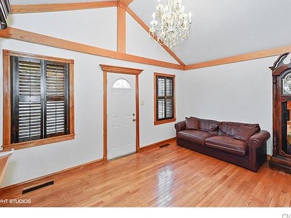 Charming single-family home featuring living rm w/vaulted ceiling, beams, hardwd fl & dentil molding. Dining rm w/vaulted ceiling, beams & hardwd fl.Kitchen w/new dishwasher, new tile fl & unique dutch door. Master bedrm w/coffered ceiling, ceiling fans & hardwd fl. Large master bath w/granite vanity, whirlpl tub, shower & tile fl. 2nd bedrm w/ceiling fan & hardwd fl. 3rd bedrm w/ceiling fan & hardwd fl. Large Palladian window in upstairs hallway streaming w/light. Fully equipped gym included. 1-car garage on .11 acres w/shed. Move-in condition. Convenient location - close to schools, highway & shopping.
