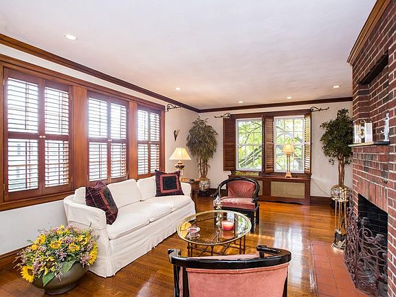Built In 1927, this is only the second owner of this custom crafted builders home. Bright & sunny 3 bedrooms, has great Living Room with fireplace, Oak floors & gracious arched entryways. White French country kitchen with beadboard & imported tile. Dining Room with custom colonial built-in hutch, crown molding, chair rail, & French doors leading to a custom deck and beautiful rear yard. First floor corner Den/Office with a wall of windows. Upper level has 3 spacious bedrooms, one with a walk-in closet, another with a walk out roof area, and all with corner exposure. Full Bath has white ceramic, classic arched tub area, & separate shower stall. Third level could make a great Master Suite or loft style Family Room. Basement with laundry room and direct access to the garage. Custom detail throughout, recessed lighting, plantation shutters, ceiling fans + many other features. Fantastic location for express bus to Boston and a short walk to Middlesex Reservation Trails and many of Medford's Great shops & restaurants.