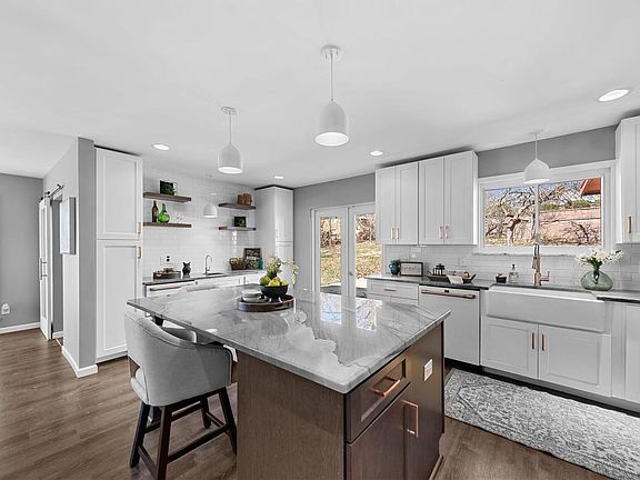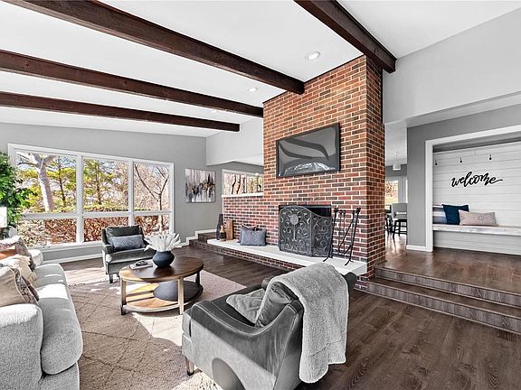 Mid-century meets modern comfort in unincorporated Riverview Hills, walking distance to the Katy Trail and the Family Arena! This four-bedroom, three full bath home is ready to move in! Step down to the spacious great room with a floor to ceiling brick wood burning fireplace, vaulted ceiling, and large windows throughout. The kitchen has been completely remodeled boasting white Café appliances, gas range with double oven, sleek hood, subway tile backsplash, large center island, granite, coffee bar with sink, built-in dual drawer beverage fridge and a spacious dining area. The owner’s suite is vaulted with wood flooring, walk in closet and bay window. The luxury bath has been updated with huge custom walk-in shower with spa style tub, skylight, double sink vanity, anti-fog mirror and custom tile. The MFL even has an added dog wash station! Solid surface floors throughout the entire home, skylights and freshly painted. Make your appointment today to see this hidden gem!
