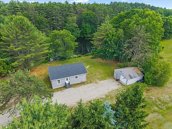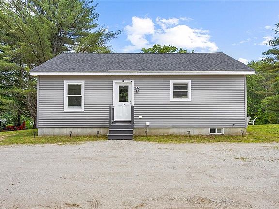 Welcome to 16 River Front Drive, a peaceful waterfront retreat with 155 feet of private shoreline and year-round access to the natural beauty and recreation of nearby Thomas Pond. Water flows from Thomas Pond through Dingley Brook into Sebago Lake, with a dam along the way that preserves the quiet, uncrowded feel of this special stretch of water. Set on 0.64 acres, this rare property lets you enjoy fishing, boating, swimming, and even ice skating right from your own backyard. Built in 2015, this well-maintained 2-bedroom, 1-bath ranch offers 936 square feet of single-level living with an open layout and plenty of natural light. The glass door in the living room frames the water view and connect indoor and outdoor living. The kitchen features granite countertops and stainless steel KitchenAid appliances, opening seamlessly into the living and dining areas for easy everyday living or entertaining. A newer Mitsubishi heat pump provides efficient heating and cooling throughout the seasons. The full basement offers excellent storage space or potential for future expansion. The one-car garage, recently re-sided, adds extra utility and convenience. Ideally located less than 10 miles from shopping and dining in Windham, just 22 miles to downtown Portland, and 42 miles to North Conway, this home offers the perfect blend of peaceful waterfront living with convenient access to some of Maine and New Hampshire's most desirable destinations. Whether you're seeking a full-time residence, a weekend escape, or a low-maintenance waterfront property, 16 River Front Drive is a place where every season brings something special.