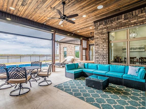 Gorgeous RIVERFRONT home with all the extras! You will fall in love with this 4 bedroom/2.5 bathroom home with plenty of room for all of your family, cars, atv's, boats, etc. Enjoy 12' ceilings in living space, 11' ceilings in bedrooms and 8' doors throughout. Upgraded granite in kitchen with extended high top breakfast bar, gas fireplace, GE Cafe gas cooktop, GE double ovens with convection, GE microwave, custom cabinets with soft close doors and drawers, extra deep cabinets, master closet safe room with FEMA rated door, custom closet with built in dressers, large walk in pantry, 4 shower heads in master bath (2 shower and 2 rain), jetted tub in master bath, trey ceiling in master, whole house security system with glass breakage detectors and 9 outdoor cameras w/ NVR and monitor, crown molding throughout, ceramic plank tile in main living space. NEW 2022: Roof, garage doors, gutters, downspouts, windows. Garage 1: 22'11" x 41' 12'6" high - heated and cooled Garage 2: 23'7 x 35'1" 14' high (Lifts do not convey) Pool: 16x30 UV and Ozone with efficient cartridge filters, gas line access, pool cover included,VFD programmable pump and SO MUCH MORE!!