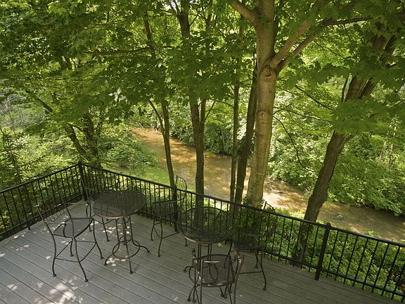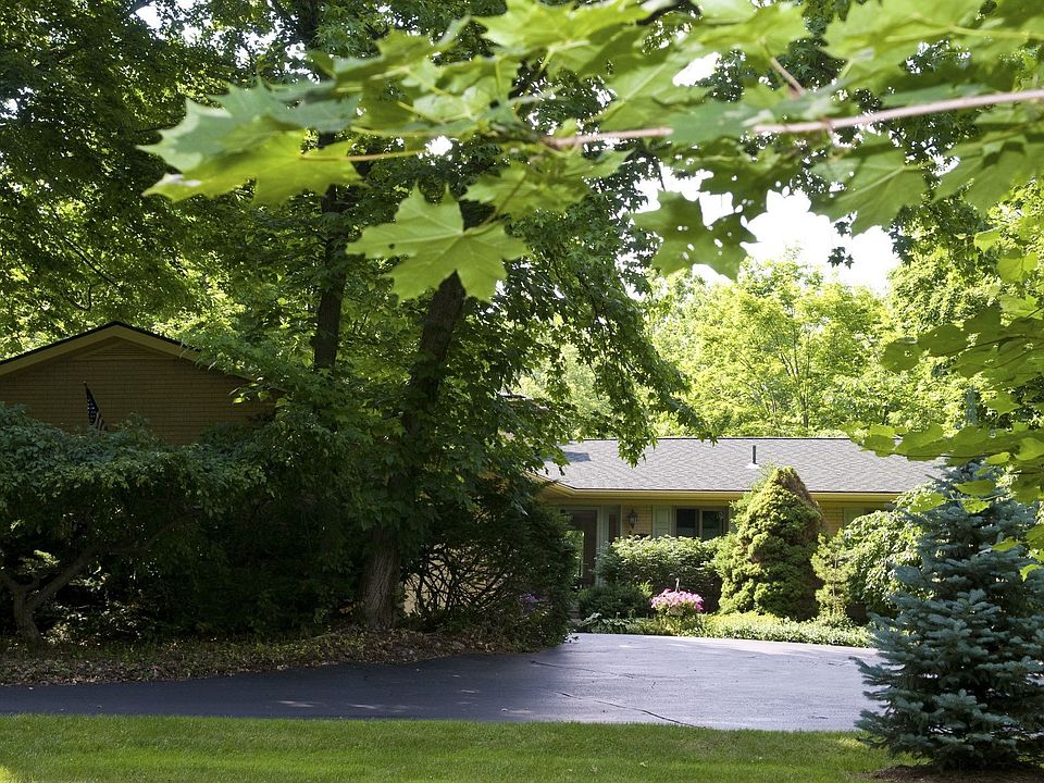 Breathtaking views and access to the Saline River.Privacy and the feel of up north on over 4 wooded acres. Mid century contemporary ranch with open floor plan designed by Donald J. Scholz. Entertain and enjoy the view from the large wrap around deck. 5 Bedrooms, 3 baths. Remodeled Chefs Kitchen (2015) with Cambria quartz countertops and high end appliances. Beautiful walnut floors (2015)throughout the main living area. Completely remodeled bathroom on first floor (April 2018) with Cambria quartz countertop and luxury finishes.New carpet in 3 of the bedrooms. Walk out lower level with 2 bedrooms, bathroom and an additional kitchen and laundry room. Possible in-laws quarters. The home has 2 brick fireplaces one converted to gas. In addition to the attached 2+ car garage the property has a 5 car detached heated garage with reinforced floors. Walk to town. Low township taxes. No showings until OPEN HOUSE Sunday, May 6. 1-4.