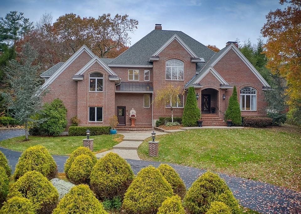 Magnificent 5400 square ft. brick front colonial abutting 900 acres of conservation in desirable Chestnut Knoll Estates. The massive kitchen has been updated with high end cabinetry, granite, walk-in pantry & high-end appliances, plus a large dinette area overlooking the beautiful grounds & heated in-ground pool. Open floor plan with family room (gas fireplace) and four season sunroom off the kitchen. Double sided fireplace for the dining room and living room and the first floor study has built-ins & a closet. The great room (26X36) has Brazilian tiger wood. Master suite w/ custom walk-in closet plus another double closet, private updated bath w/tile shower (rainshower head, handheld), double granite vanity, private water closet & Jacuzzi. Circular driveway, newer roof, newer central air, pool heater, and water heater, plus irrigation, large shed, 2 staircases and all closets are custom