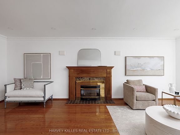 Welcome to 16 Robaldon Road, a luxurious, fully renovated Georgian home with 5,300 sq ft of living space. Nestled beside St. Georges Golf Club, this elegant 2-storey home blends timeless architecture with modern comfort. From the Parisian-inspired courtyard and landscaped lush private gardens to the sunlit Calacatta marble foyer with sweeping spiral staircase, every detail exudes elegance. The main floor features well-designed, spacious rooms with crown molding, new modern light fixtures, pot lights, hardwood floors. The chefs kitchen by Cameo has quartz countertops, premium built in appliances (Wolf, Miele..), built-in conveniences, and bright eat-in area with gorgeous garden views. The open dining and living room with a walnut fireplace, are perfect for family celebrations, entertaining and hosting guests. The cozy family room with walnut fireplace creates a warm atmosphere for the family to relax and connect. The main floor laundry adds convenience. The new smart home automation system controls lighting, climate, security, and entertainment for ultimate comfort and 24x7 security. Upstairs are four bright, spacious bedrooms. An attribute that sets this house apart is that each bedroom offers direct access to a private, fully updated bathroom. The ultra spacious primary suite has a cozy sitting area and spa-inspired 6-piece ensuite with rain and steam shower, soaker tub, large dual-sink vanity and custom walk-in closet. A second spacious bedroom, rivals the size of the primary bedroom in many homes and has a modern ensuite that includes a digital shower. The lower level includes a cozy rec room, gym, games room, guest suite, professional wine cellar, cedar closet, large storage area and workshop for the DIY enthusiast. Just steps to parks, biking/walking trails, top schools, transit and 10 min drive to airport. This luxurious home is designed for comfort and joyful livingperfect for everyday family life and entertaining alike.