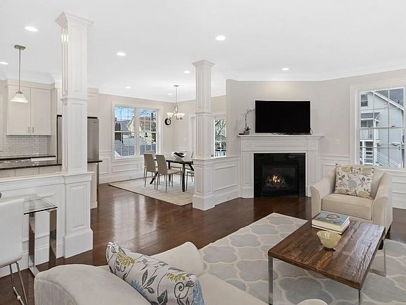 NEW CONSTRUCTION...PREMIUM LOCATION....Extremely desirable Waltham neighborhood featuring a total of 2300 sq. ft. consisting of 7 rooms, 3 bedrooms, 3.5 bathrooms. Stunning open floor concept with over-sized gas fire-placed living room with decorative columns, custom kitchen with island and tray ceiling, quartz counter-tops, stainless steel appliances, dining area and half bath with pocket doors on the main living level. 3 generous sized bedrooms on the 3rd floor including a master suite with walk -in closet and tray ceiling. Bonus family-room/home gym/office with full bath on the 1st floor. 1 car garage, private deck, professional landscape yard with irrigation, patios, with many upgrades including custom closets, crown molding, wainscoting, hardwood floors throughout, Central Air, Cat 6, recessed lighting, ample storage and off-street parking. Walk to restaurants, shopping, parks and Charles River. Extremely convenient to commuter line, bus, Newton, Boston, Rt 128 and Mass Pike.