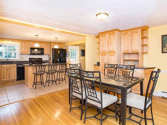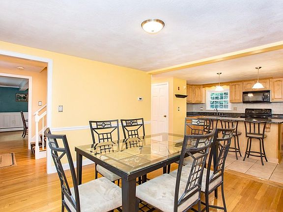 Finally...A gorgeous house in a great neighborhood at a nice price! Fabulous open floor plan features an awesome updated kitchen with maple cabinets, granite counters, center island breakfast bar, a separate dining area with built-ins and an impressive vaulted ceiling living room with brick fireplace. Throw a dinner party in the formal dining room with wainscoting. French doors open to the private office. The 2.5 baths are all beautifully updated - 2nd floor bath with heated floor. Genuine hardwood floors. Fun finished basement. Loaded with updates including windows, roof, Wi-Fi thermostats, garage door opener, mini split A/C + heat on 1st floor and LL, 200 amp electric, whole house surge protector, front door & granite steps, huge deck, shed, driveway, gutters, downspouts and solar panels. Peerless cast iron boiler w/cold air intake, indirect water heater and oil tank. Mass Save energy efficient. Wow! What are you waiting for?