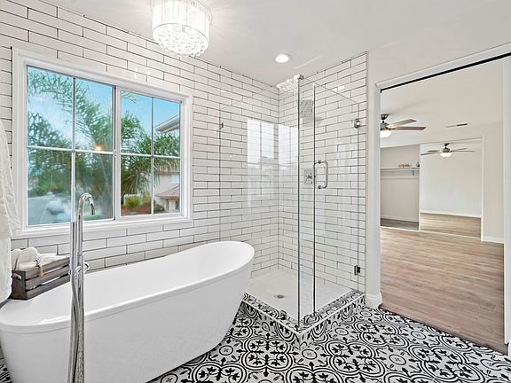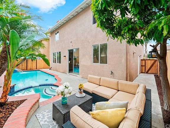 Completely remodeled and absolutely gorgeous single family home with sparkling pool & spa. A perfect home for when you need to shelter in place or for when you are ready to finally entertain friends and family. Beautiful curb appeal with mature palm trees greet you upon arrival. Once inside you'll enjoy the spacious, sun-filled open floor plan with brand new distressed wood-look floors, neutral tone walls and high ceilings. A cozy remodeled fireplace in the living room lends an air of contented charm. The incredible all white kitchen with brand new shaker cabinets, quartz countertops, stainless steel appliances and subway tiles opens to the dinning and living room area. Enjoy your hot summer days in the beautiful backyard with pool, spa and mature palm trees surrounded by brand new wood fences. Ascend to the second floor and enter the spacious master bedroom with a huge walk-in closet and a completely remodeled en-suite master bath featuring a sliding barn door, duel sink vanity and a soak-in roman tub with a separate walk-in shower. The remodeled secondary bathrooms are equally elegant and beautiful. Enjoy the convenience of a separate laundry room on the 2nd floor. Other features of this incredible home include an oversized attached 2-car garage, brand new paint, lighting & pluming fixtures and much more. Situated near excellent schools, parks and trails. Minutes from freeways and renowned shopping/restaurants. Please see be sure to watch virtual 3D and video.