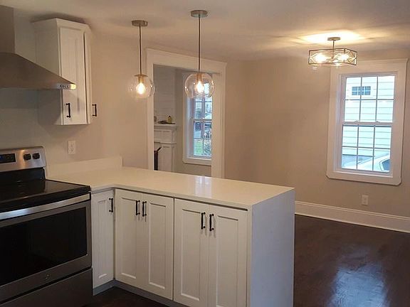 Newly renovated cape in desirable neighborhood in South Weymouth just a few miles from exit 16 off route 3. Listing shows 4 bedrooms but there are actually 5 but 2 do not have closets. New siding, windows, flooring, heating system. Brand new kitchen cabinets with quartz counter tops and new appliances. Kitchen includes great breakfast bar with waterfall edge counter and french doors that lead to nice deck for outdoor cooking and dining. First floor includes 2 bedrooms that could be used for office, play room for kids; den or guest bedroom. First floor full bath has brand new tub, tile flooring vanity and toilet. Upstairs has nice sized Master bedroom with master bath with full tub; new vanity, toilet and tile floor and surround as well as plenty of closet space. 2 more bedrooms upstairs as well. Full basement ready to be finished.