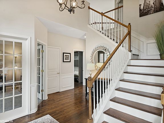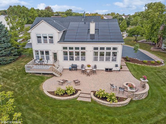 Welcome to this stunning 4 bedroom, 3.1 bathroom home nestled in a serene cul-de-sac, and situated on a premier lot. An environmentalist's dream, this exquisite residence is conveniently located in the desirable Creekside Glens subdivision, backing up to Federally Protected Wetlands. The home features a recently installed SunRun Solar Panel Array to neutralize utility costs and save energy. Upon entering the gracious foyer, the stylishness of the home is immediately apparent. Dual staircases and a two-sided fireplace add to the grandeur, and the 2-story living room allows natural sunlight to showcase the beauty of the hardwood floors. The bright and open floorplan allows for effortless movement throughout, promoting a sense of space and connection. The heart of this home is the gourmet kitchen, incorporating an island and adjacent breakfast room into its functional design. Upstairs, the primary bedroom, complete with an en suite bathroom, provides the perfect retreat after a long day. The luxurious primary bathroom features a soaking tub, dual vanities, separate shower, and a generous walk-in closet. Each additional bedroom offers plenty of space for relaxation, study, or play. The fully finished basement offers a recreation room, a separate bar and gaming area, a guest bedroom, an exercise room, and a bathroom to accommodate all of your entertaining needs. Enjoy the company of family and friends on the expansive patio, which includes a fire pit for upcoming autumn evenings. Wander the walking paths throughout the neighborhood and wetlands surrounding the property. While seamlessly blending classical elegance with modern comforts, this residence is more than just a home; it's a masterpiece that invites you to experience the height of refined living.