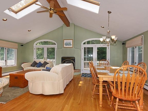 Meticulously maintained and updated contemporary raised ranch home with many updates.Skylights and windows offers gleaming natural sun light in this expansive cathedral family room /dining area with beautiful fireplace, skylights,double french doors & mellow hardwood floors,The Double french doors open to your extended large deck overlooking the peaceful back yard & natural setting with stone wall,Cabinet packed kitchen with plenty of storage & stainless steel appliances,living room off kitchen for extra entertaining space ,updated bathroom with skylight, three bedrooms w/ gleaming hardwood floors thru out, finished basement has full bath, laundry room,office, family room and additional finished room for extended guest or aupair . Large Storage area for your workshop in basement and walk out access, updated windows and central air on first floor, beautiful setting and neighborhood with quick access to highways,shopping and more. Easy to show , showings begin Saturday August 19.