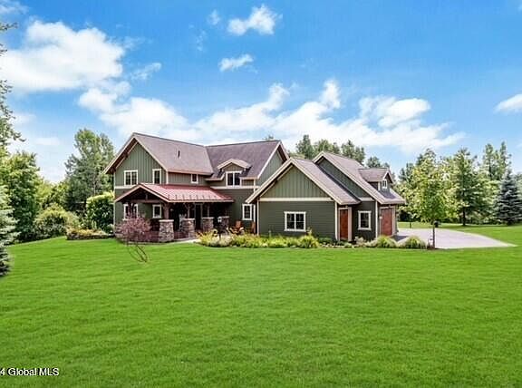 Spectacular timber frame home on an expansive beautiful lot in the East Greenbush School District. You are going to fall in love with this one of a kind custom home with exposed timber beams, cathedral ceilings and open floor plan. The 1st floor offers a two story living room with a fireplace, an open concept kitchen/dining/ living space as well as a master suite with a walk in shower and walk in closet. Also on the main floor is a den, a laundry room, mud room and a large pantry. Upstairs you will find a large loft area overlooking the living room and three beautiful bedrooms all with cathederal ceilings as well as two more full bathrooms. Over 2.5 acres of land with a gorgeous front porch, a large deck out back and a three car garag