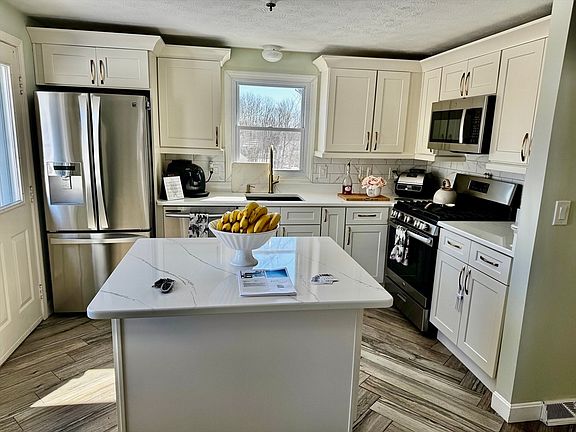 Beautiful Gambrel style home located in the Pawtuckeville section of Lowell tucked at the edge of a cul-de-sac and in pristine condition. Upgrades include a gorgeous kitchen with quartz counters and tiled flooring, beautiful hardwood floors throughout, 2 full impeccable baths, a small bedroom on the first level near the garage and multi-purpose room and 3 additional bedrooms in the 3rd level. The home looks like it was freshly painted and in immaculate condition. The deck and large yard will offer great Summer fun opportunities and there is a garage under with a newly installed sprinkler system both front and back yards to keep your lawn green. Showings begin at Open House. This home is trluly a Must See.