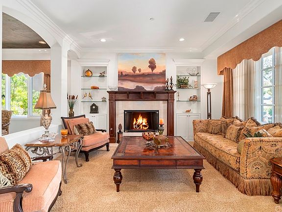Welcome to 16 Rosana Way, a top quality Stonefield estate nestled in the highly sought after Private Collection neighborhood of Coto de Caza. Beautiful double door entry leads you to the main hallway of this stunning home with a formal living room with a fireplace and built-in shelving, a private executive office with coffered ceilings, built-ins and beautiful wood finishes. Spacious dining room with a magnificent chandelier. Huge Gourmet Kitchen that is fit for a chef with large center island, double sinks, counter seating, stainless steel appliances, gas range stove, double ovens, double dishwashers, butler's pantry, and ample cabinet space for storage. The kitchen opens to the family room that features coffered wood ceilings, a built-in entertainment system and a grand fireplace. A downstairs bedroom with en suite bath completes the lower level. Expansive Upstairs Master Suite boasts a private retreat, a balcony with views of the backyard, a fireplace and built-in entertainment center. Spa-like Master Bath includes separate his & hers sinks plus vanity, separate jetted tub and shower and walk-in closet. 3 additional bedrooms with en suite baths, a bonus media room with wet bar & bathroom and laundry room complete the upper level. Entertainer's Dream Backyard features an outdoor cabana living space with fireplace and built-in entertainment, pool & spa, and built-in BBQ & bar. Also new interior updated paint colors and a Low Tax Rate!