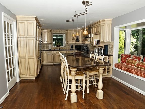 MUST SEE, Exquisite home,open floor plan,with park-like backyard & meticulous landscaping. Upon entering, you will feel at Home! The ground level boast gleaming hw floors.The open concept living area incorporates the magnificent upgraded custom kitchen, equipped with top of the line appliances; Bosch & Viking, natural granite countertops, with tumbled marble backsplash, and a pot filler faucet conveniently overhanging the stove. The Breakfast area has a large granite peninsula that seats five & a relaxing window seat with natural light! The dining room has an open view to the grand addition, family room. This room is truly unique & breathtaking,with a vaulted ceiling, & glass throughout, it has a panoramic feel, allowing one to enjoy the picturesque backyard as well as a walk out to the brick paved patio.