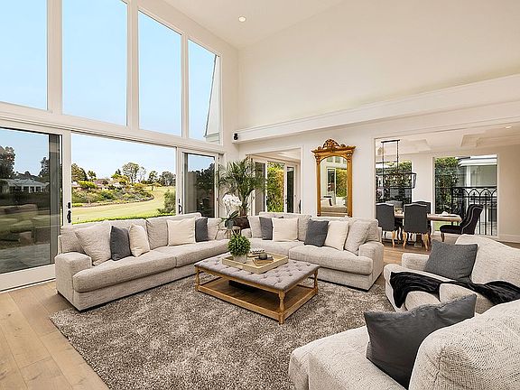 Behind the guarded-gates of Big Canyon, this desirable home is settled on an oversized lot, with some of the best golf course views Big Canyon has to offer. When entering the recently remodeled home with beautiful sand dollar maple floors, you are invited by high ceilings and a direct view of the golf course. On the main level you will find a family room with stack stone accented fireplace, powder room and slider to the yard. The light and bright kitchen features Quartz countertops, a Sub-Zero refrigerator, walk-in pantry, and opens up to the formal dining room and living room with Bose surround system. Encapsulating all that is modern yet traditional, dual window panes showcase the 18th fairway and reveal an abundance of natural light. The generous downstairs master suite features sliding doors to the patio, a fireplace and golf course views. An oversized laundry room with Quartz countertops, center island and farmhouse sink, a mudroom and an attached 3-car garage complete the lower level. Upstairs offers a large bonus room complete with wet bar, soda fountain and Sub-Zero refrigerator, three additional ensuite bedrooms with views, plus an office with built-ins or 5th bedroom. A private deck brings more incredible views sprawling from the 18th fairway to the green. The yard appeals to the ultimate outdoor entertainer with a putting green, built-in Viking BBQ, and a pool complete with waterfall, slide and jacuzzi. This is a one-of-a-kind residence you do not want to miss!