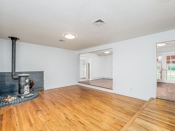 This is not a drive by! Inviting covered slate front porch welcomes you to this unique 4 bedroom, 2.5 bath Ranch style home w/many updates. Updated (2017) Eat-in-Kitchen boasts tons of contemporary white cabinetry, SS appl., island w/range & seating connects via french doors to 3+ season room overlooking large private yard. Step down living room/dining room w/wood burning/coal stove. Very versatile floor plan lets you define the space. Spacious MBR w/en-suite updated full bath (2018) & walk-in closet that's shared w/front bedroom w/wood burning fireplace which can be used as a sitting room/office. 2 more spacious BR's w/hardwood floors - one w/half bath & the other is perfect for sharing w/a unique shape. Updated sky-lit full bath w/tub/shower combo. Gigantic level yard w/2 car garage plus storage w/loads of parking for those that like to entertain. Multiple decks to enjoy the outdoors including one off the Master suite, one off the dining room, & at entrance. Roof 2018 - AC 2010
