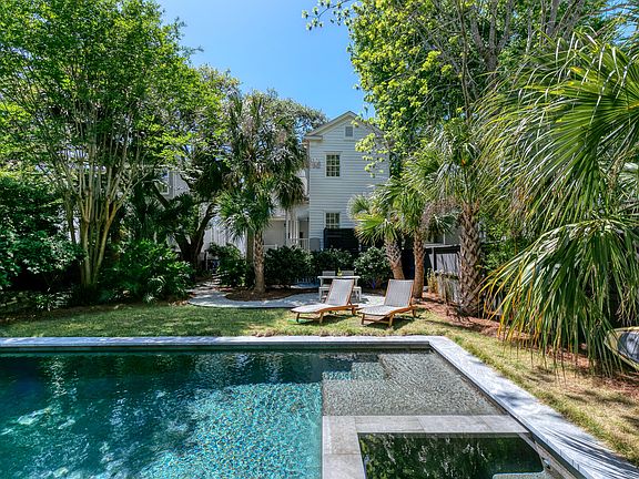 Experience South of Broad living at its finest at 16 Rutledge, where Victorian elegance meets modern luxury. Less than a block away from Colonial Lake and a few blocks from The Battery, the location, cannot be beat if you are looking for downtown living. Situated on a sprawling lot, the backyard oasis has a 30-foot in-ground heated swimming pool and spa that can be enjoyed all year round.Step inside this 5-bedroom, 6-bath, 3-story home. The foyer greets you with soaring ceilings and original hardwood floors. On the first floor, you will find a formal living room connected to the dining room and an updated kitchen that hosts a more casual dining experience. Off the kitchen, you can access the backyard or continue to the attached Carriage House, which can serve as a bedroom or office with a full bath. On the second floor, the primary bedroom is a true retreat with an en-suite bathroom, a walk-in dressing room, and access to the expansive balcony. The bathroom features a large glass-enclosed shower and dual vanities, providing plenty of space. Off the primary bedroom is the laundry room with a double washer and dryer and another bedroom with its own full bathroom. As you head to the third floor, two bedrooms, each with their own bathrooms, are joined together by a common space that makes for a great media room or playroom. The expansive backyard is a true oasis, with lush greenery, Palmetto trees, and beautiful landscaping that provides plenty of room for outdoor activities. The ample outdoor dining and grilling area, along with the 30-foot heated pool and hot tub, make for an incredibly relaxing space that can be enjoyed all year round. There is an exceptionally long driveway that provides an ample amount of off-street parking.