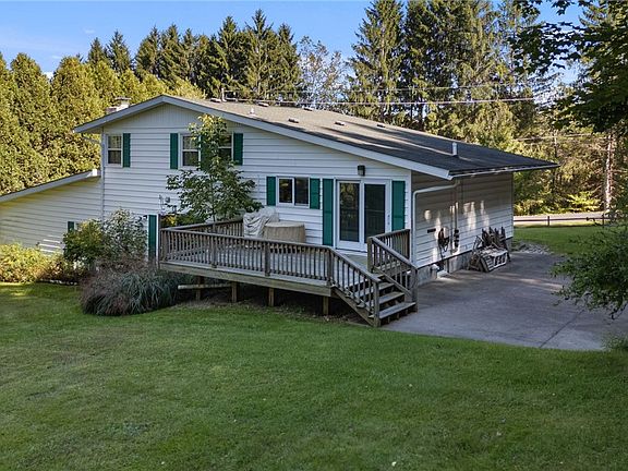 This contemporary home takes center stage on a sunny 2.26-acre lot, blending open green spaces, serene pine woods, a tranquil nature pond, and tiered perennial gardens. The spacious, multi-level layout offers a variety of intimate living areas, including a bright living room with a bay window and hardwood floors, a cozy den featuring a wood-burning fireplace, and a versatile lower-level recreation room. The updated eat-in kitchen boasts island seating and opens to a private back deck through sleek sliding doors, seamlessly integrating indoor and outdoor living. The primary bedroom exudes comfort with its own wood-burning fireplace and an updated ensuite bathroom. Three additional bedrooms and a half bath ensure ample space for everyone. Outdoors, the patio and gardens await your green thumb. Located just minutes from the Village of Dryden, with a bus stop to Cornell a mere half-block away, this property is a must-see! Open House Saturday 3/8 10-11:30AM