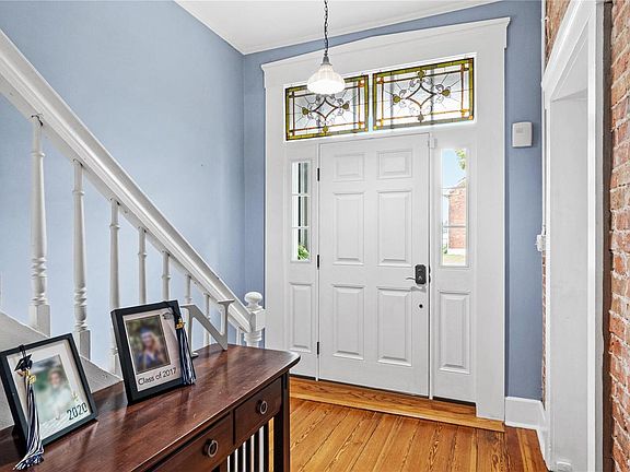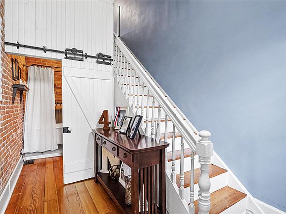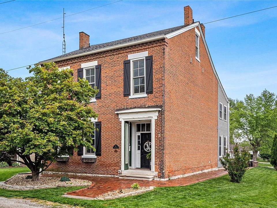 Discover a piece of history with this remarkable 2.5 story, Federal-Style home, that has been restored and updated with modern conveniences. You're greeted with sky high ceilings, timeless wood floors, and exposed brick through the entire home. The main floor features a full bath with a claw foot tub and barn door. Next, the expansive living areas, one of which features a decorative brick fireplace. From there, the eat-in kitchen, where a stunning brick archway harmonizes with modern counters, massive island, plus newer appliances. Also on the main floor is a sunroom and laundry room. Ascend to the second floor, a generous hall leads to the Primary Suite, with another decorative brick fireplace, grand bathroom, and walk-in closet. Additionally there's another bedroom, and multi use room, currently used as a bedroom. The third-story loft, offering versatility as an additional bedroom or multi use space. Don’t miss the opportunity to own a true gem in the heart of Millstadt!Must see!