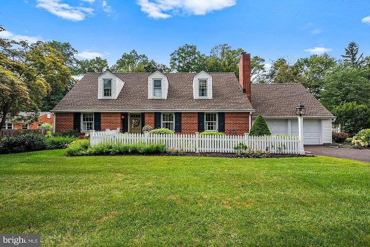 First impressions are everything and this picturesque brick cape cod with picket fence and manicured grounds not only delivers but will leave a wonderful lasting impression as well. With impossible-to-deny charm, this lovingly cared for and beautifully updated home with 4 bedrooms and 2.5 bathrooms boasts a traditional cape layout plus 2 car garage and outstanding outdoor living space. The brick patio in the gracious back yard with mature trees and landscape affords a serene privacy, truly an exquisite lot. Hardwood floors grace most of the 1st and 2nd floors along with updated paint, trim and fixtures. Bathrooms and kitchen have been updated with modern amenities and excellent style. The large living room with fireplace and the office with built-ins flank the front foyer entry. Great natural light throughout the home including in the cheerful kitchen with vaulted ceiling and skylights over the breakfast area bordered by a bank of windows. Note the furniture style custom built-in with rich wood countertop in the prep area of the kitchen. An enclosed porch serves as a quaint family room with French sliders to the patio and is adjacent to the breakfast area and formal dining room. The main floor owner's suite has ample closet space and a large full bathroom with modern stall shower with newer subway tile. The second floor has 3 large bedrooms all with great closet space and a completely renovated full bathroom with window. The basement has potential for many uses beyond just storage and laundry area. An inviting property, high on style and in move in condition, this tremendous property in a desirable neighborhood with potential to meet all your needs will delight and impress.