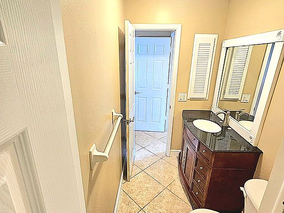 ** Two bathrooms each have a vanity and toilet and access to a large spacious room in which you'll find the common shower/tub and a spacious linen closet